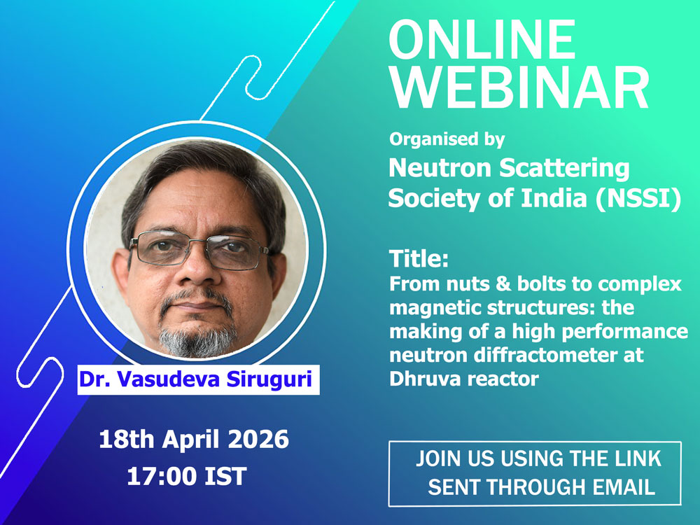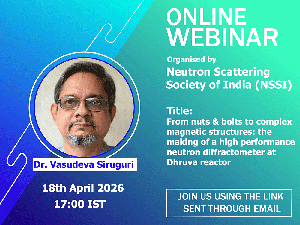 A National Facility for Neutron Beam Research (NFNBR) has been operating for more than two decades at Bhabha Atomic Research Centre for basic and applied research in condensed matter science. The present-day facilities in Dhruva reactor include, single-crystal and powder diffractometers, polarization analysis spectrometer, Hi-Q diffractometer, triple-axis & quasi-elastic scattering spectrometer (all installed in the reactor hall), two small-angle scattering instruments, and a reflectometer (in the guide-tube laboratory). Details of these instruments can be found here. The National Facility is regularly utilized by scientist within Bhabha Atomic Research Centre apart from more than 200 users from various universities and other academic institutions. Support for the collaborations is available from University Grants Commission- Department of Atomic Energy-Consortium for Scientific Research (UGC-DAE-CSR), Board of Research in Nuclear Sciences (BRNS), and other agencies in India.